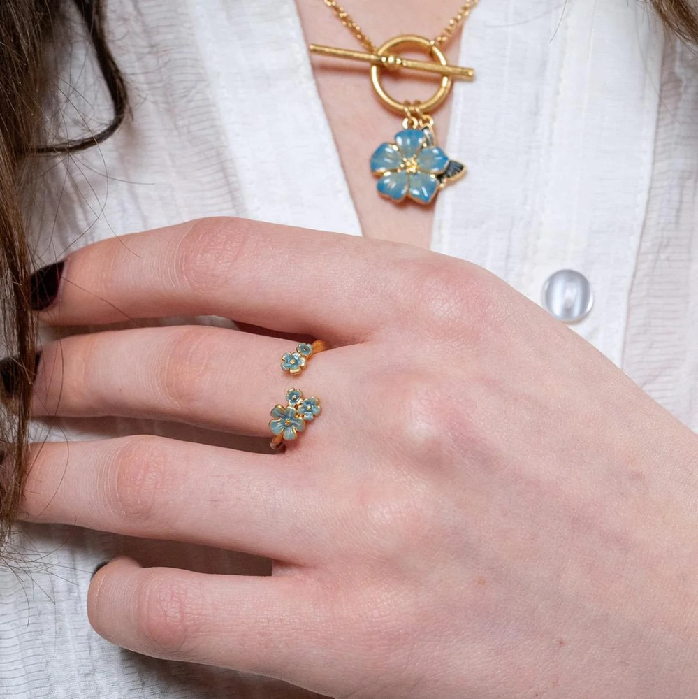 Ringen er en del av den vakre Forget-Me-Not-kolleksjonen, hvor hvert smykke harmonerer perfekt med de andre for et uttrykk av eleganse, femininitet og raffinement.